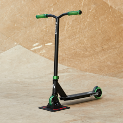Astuce : pour une pratique parfaite le guidon doit être à la hauteur ou légèrement au-dessus du nombril lorsque l'on est debout sur la trottinette freestyle.