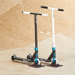 Son T-bar en CrMo blanc ultraléger et son deck cut-out de 11,5 cm avec croix de renfort assurent un contrôle total et des réceptions stables, même après les tricks les plus engagés. Les roues aluminium Core de 110 mm équipées de roulements ABEC 9 garantissent une glisse fluide et rapide, idéale pour enchaîner les runs sans perte de vitesse.